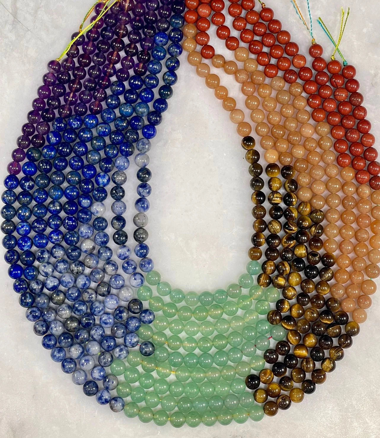7 Chakra / Seven Stone Mix, (Amethyst, Lapis, Sodalite, Green Aventurine, Calcite, Red Jasper, Tiger Eye) Round 6mm 8mm