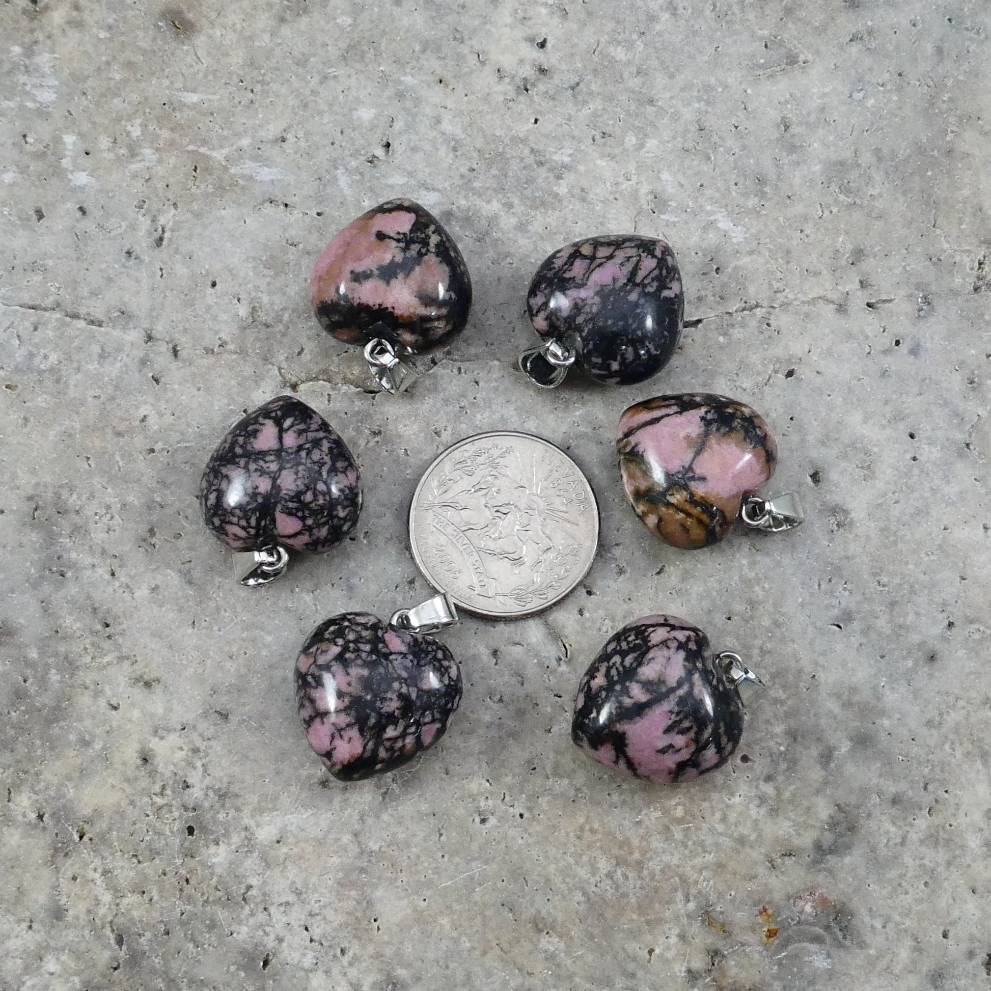 Black Rhodonite 20x20mm Heart Pendant