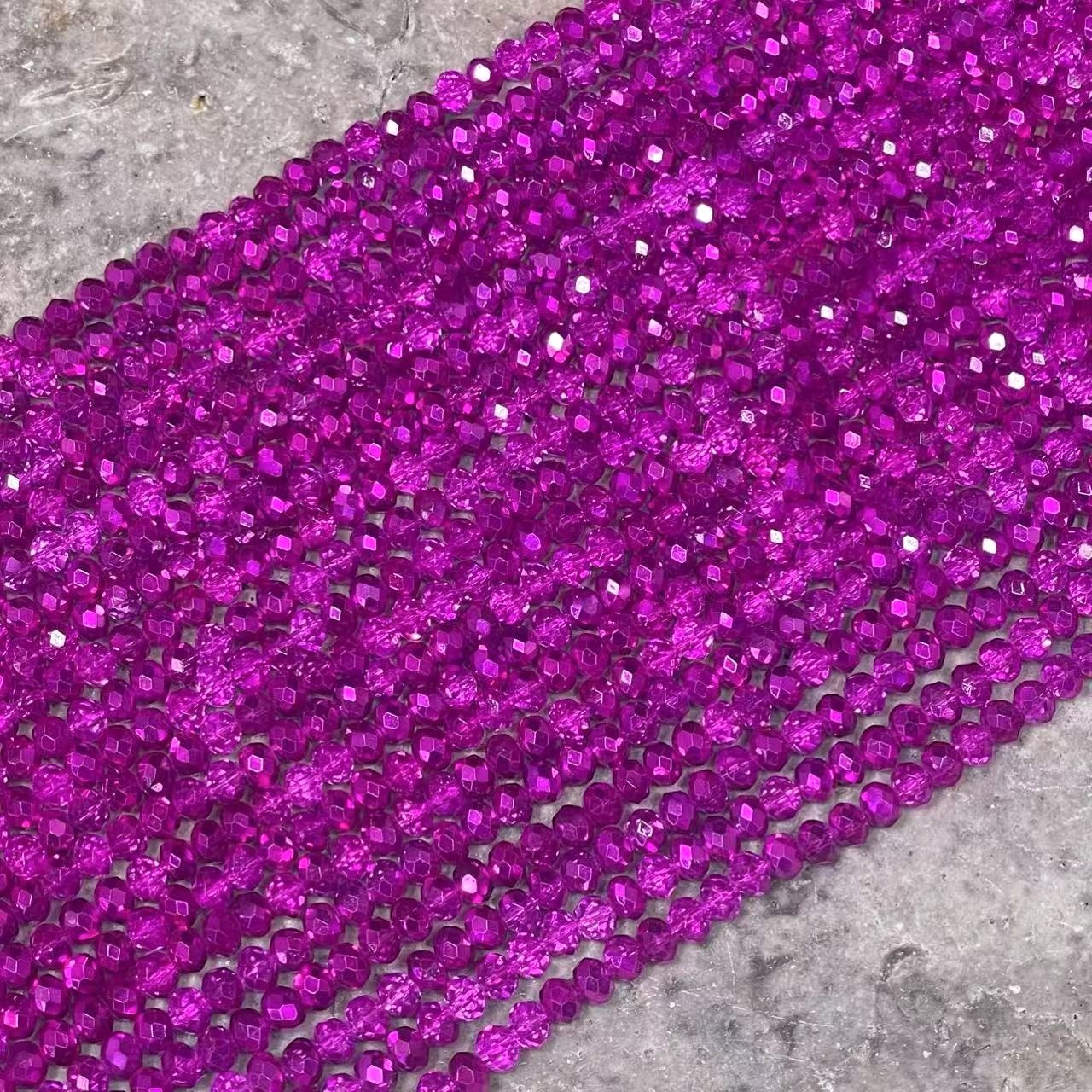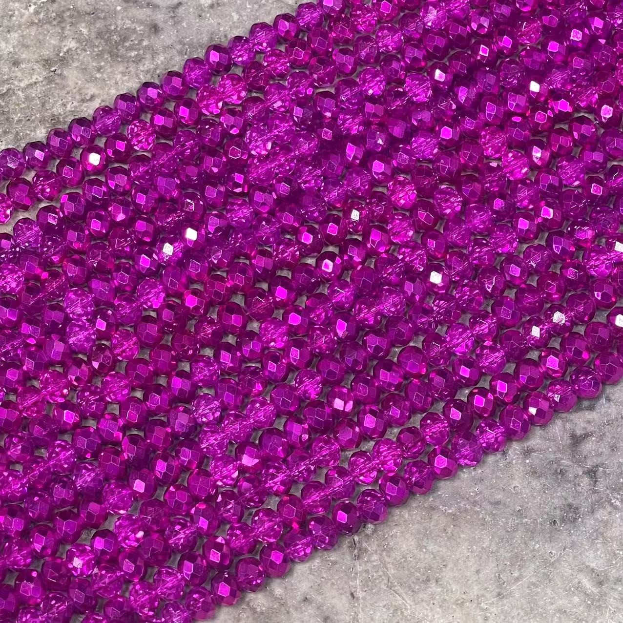 Crystal Faceted Rondelle Fuchsia & Metallic, 2mm 4mm 6mm 8mm