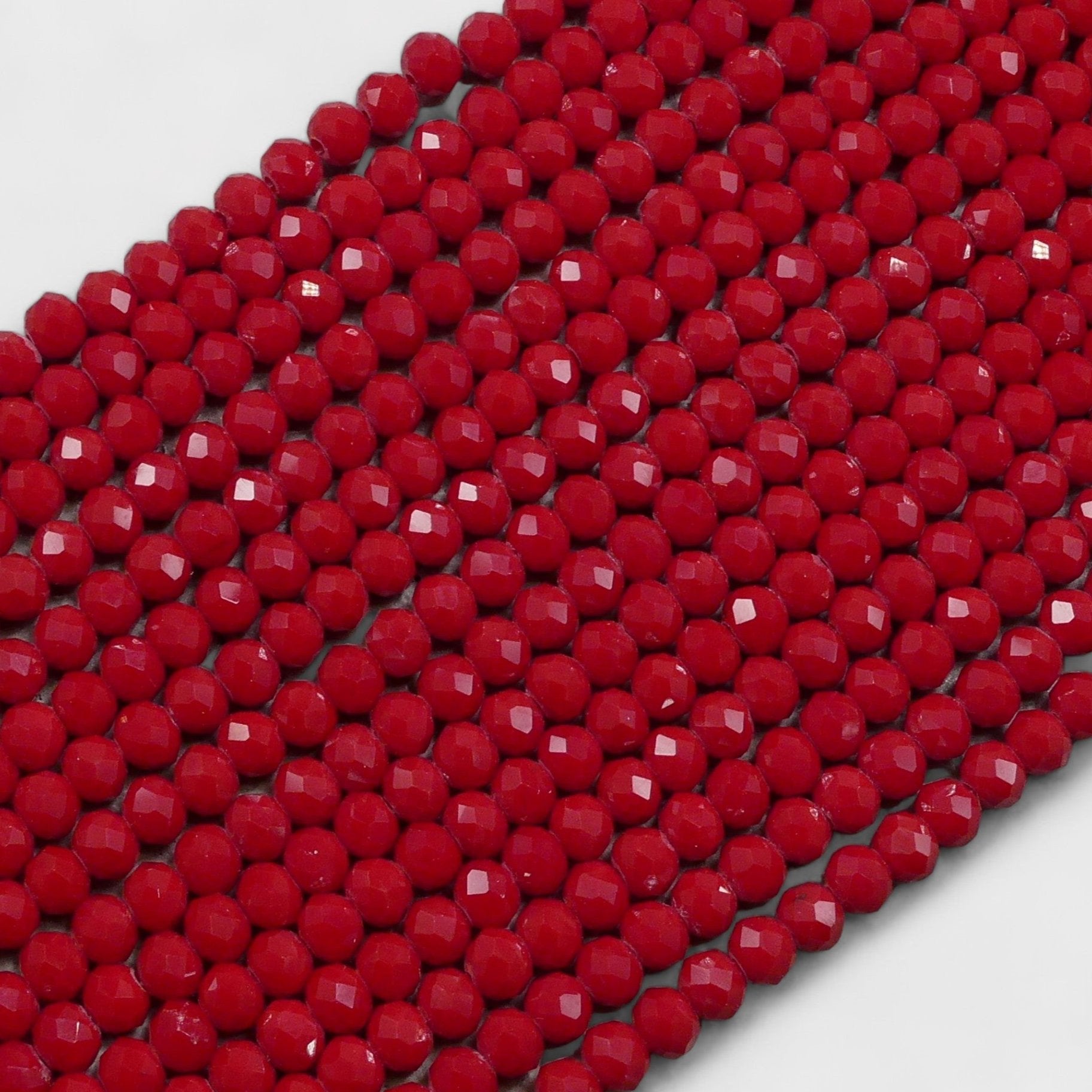 Crystal Faceted Rondelle Dark Red Coral, 2mm 4mm 6mm 8mm