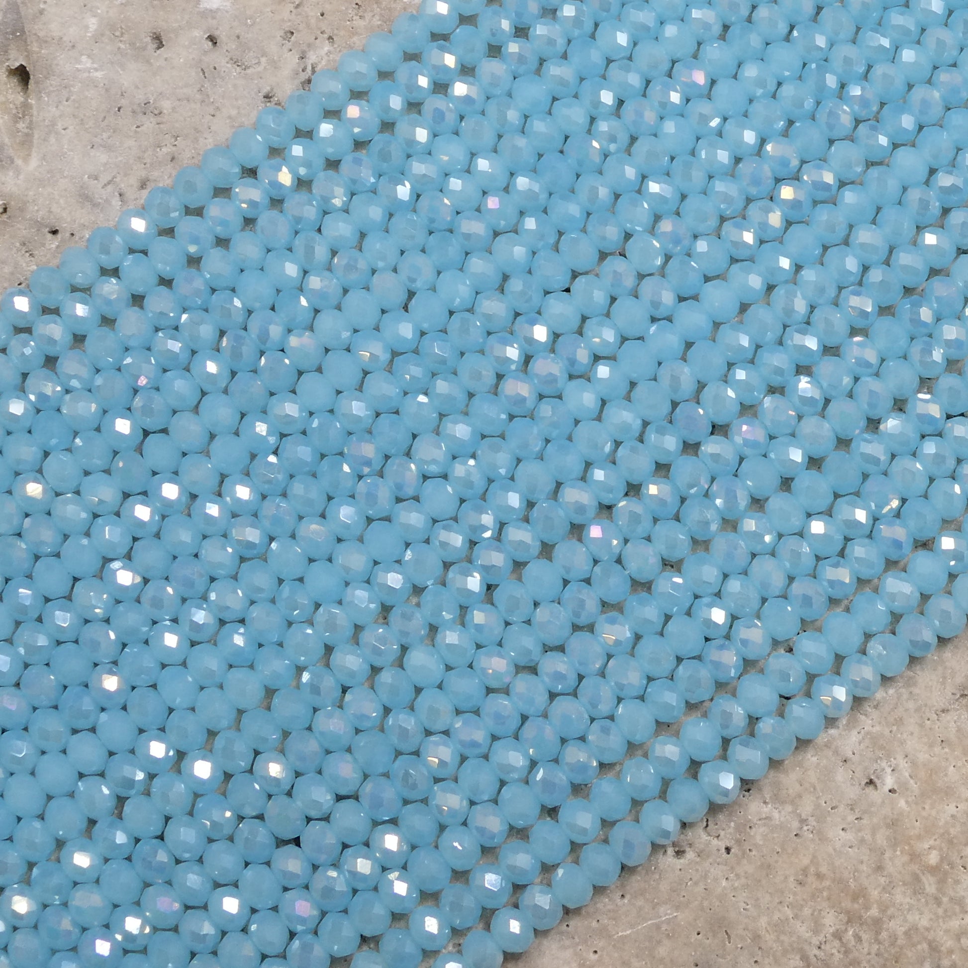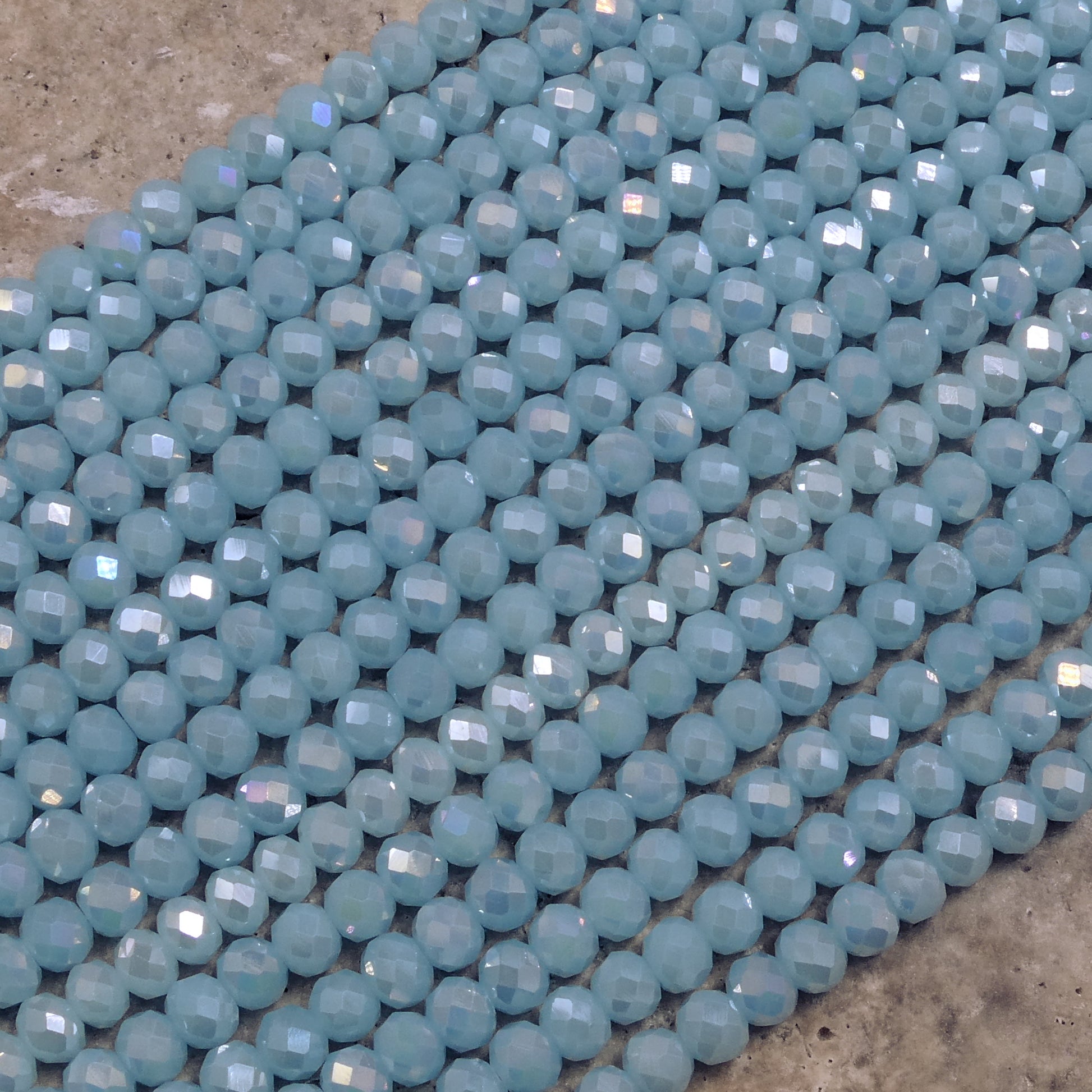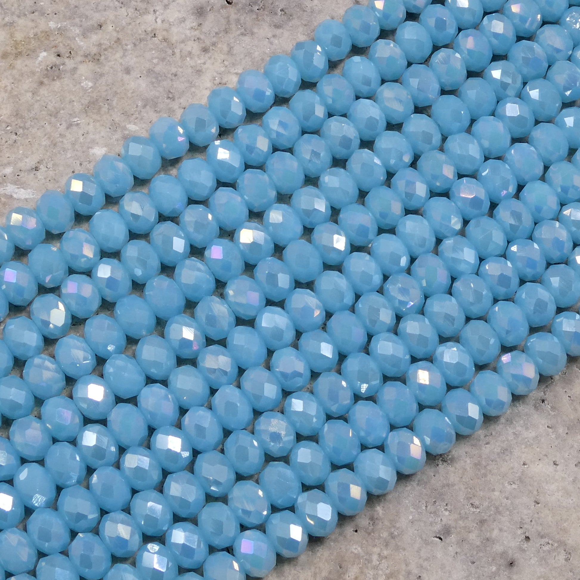 Crystal Faceted Rondelle Blue Sky Light Opaque, 2mm 4mm 6mm 8mm