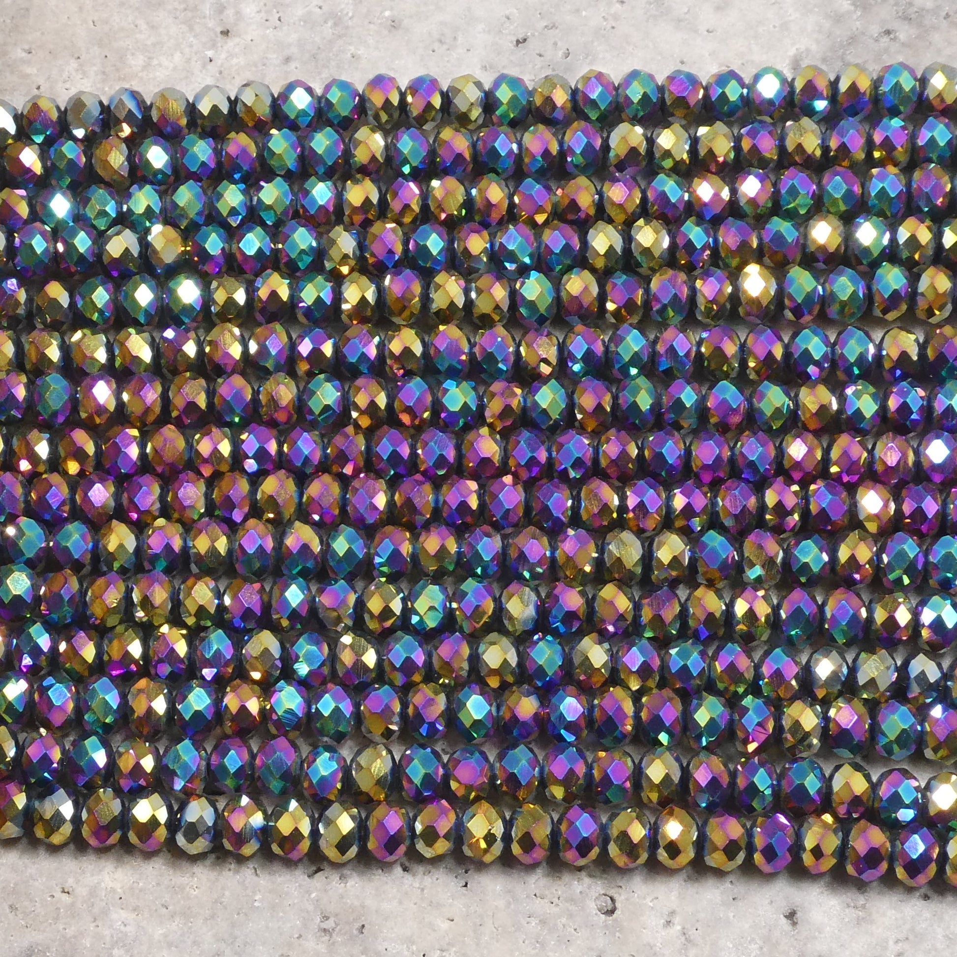 Crystal Faceted Rondelle Metallic Rainbow, 2mm 4mm 6mm 8mm
