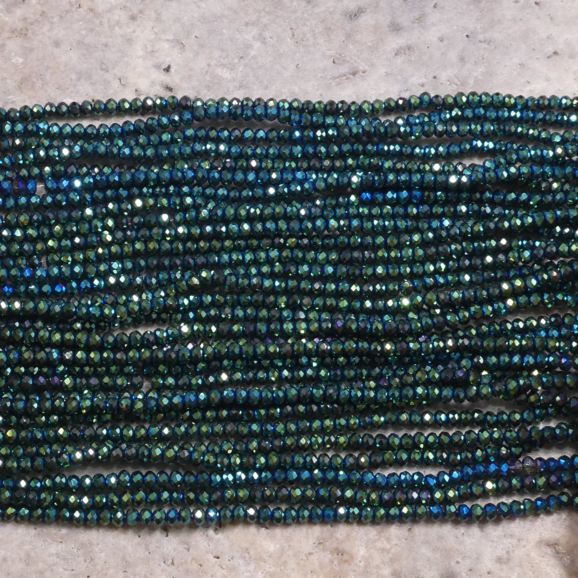 Crystal Faceted Rondelle Metallic Green Iris, 2mm 4mm 6mm 8mm