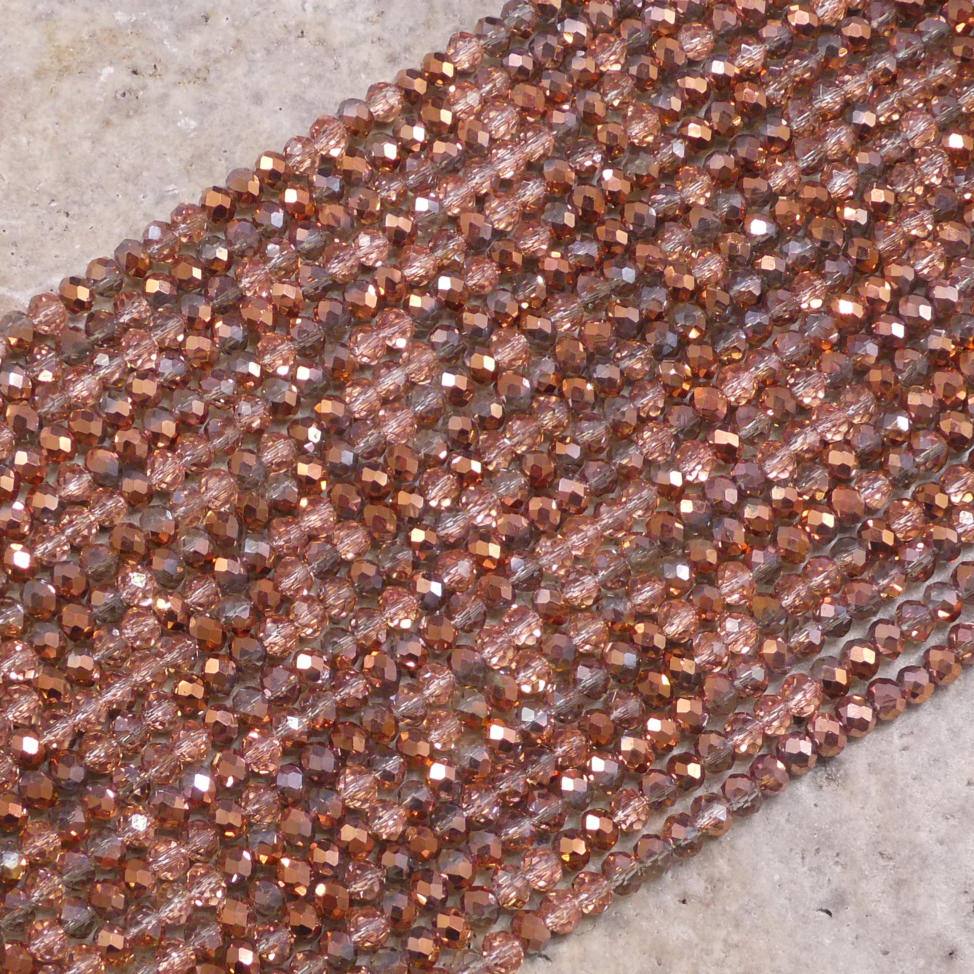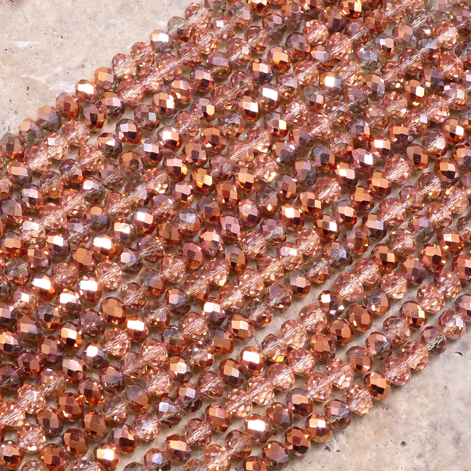Crystal Faceted Rondelle Rose Gold AB, 2mm 4mm 6mm 8mm