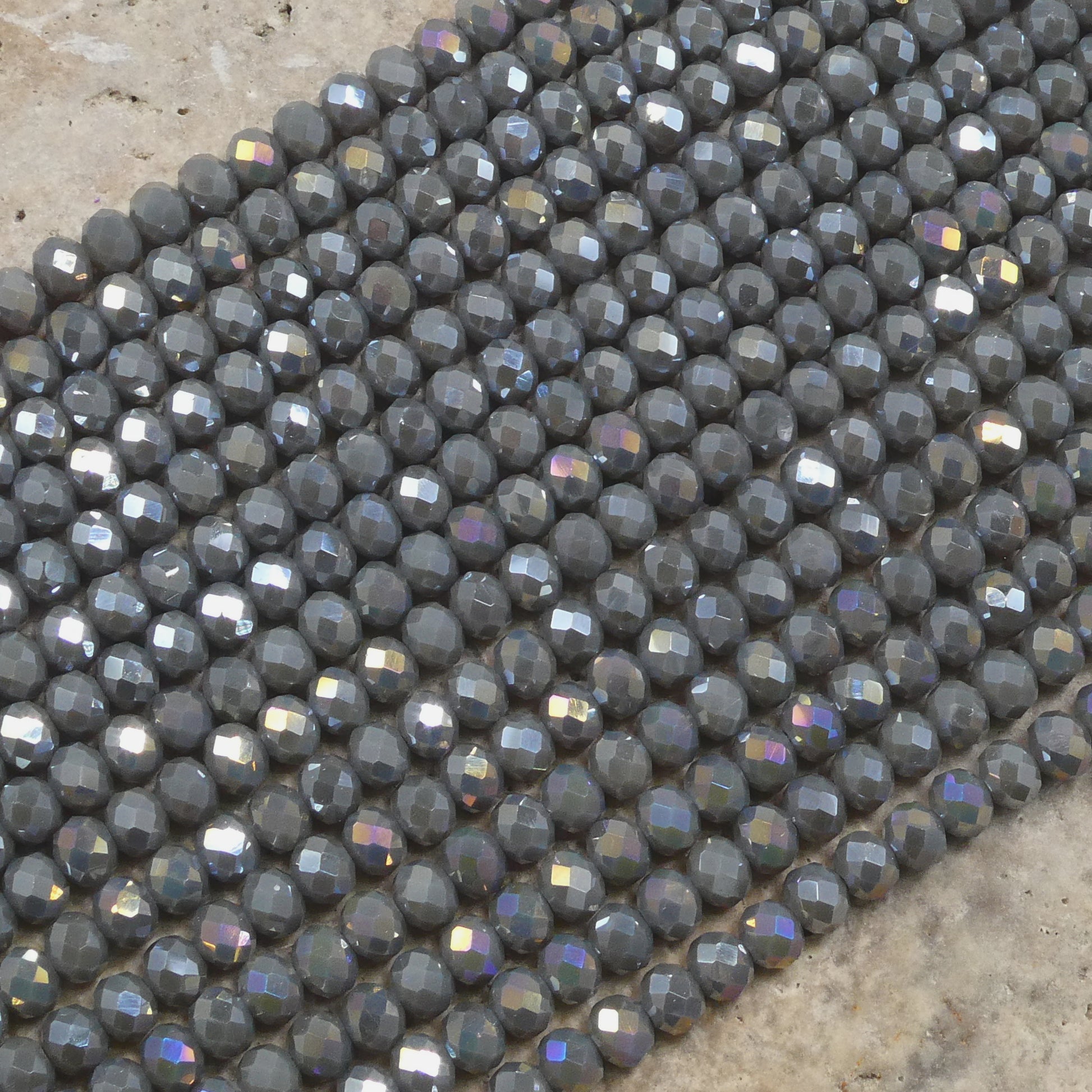 Crystal Faceted Rondelle Kendall Grey AB, 2mm 4mm 6mm 8mm