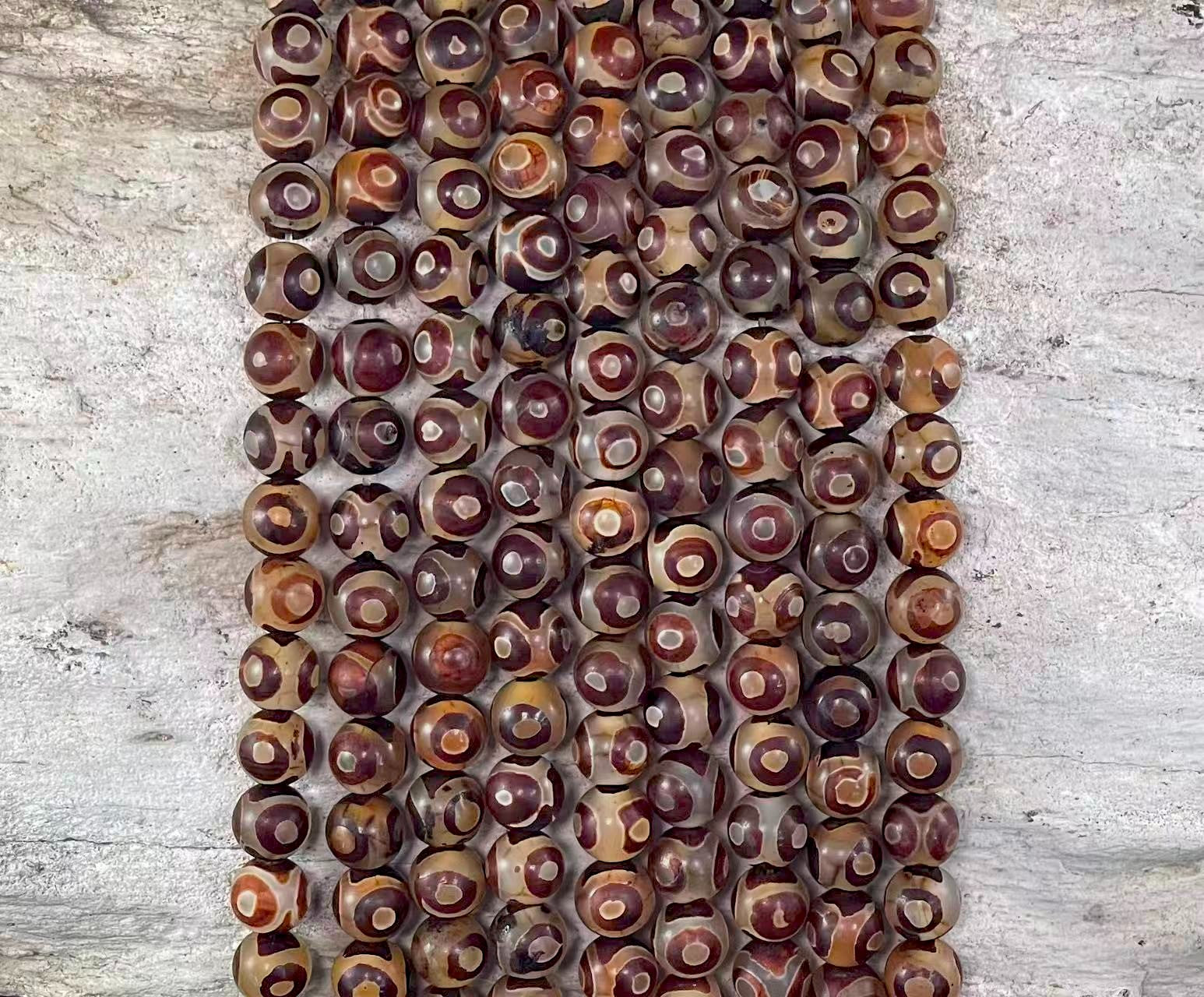 Dzi Agate, Tibetan Agate or Etched Agate Matte, Round 8mm, (Brown Eye Design)