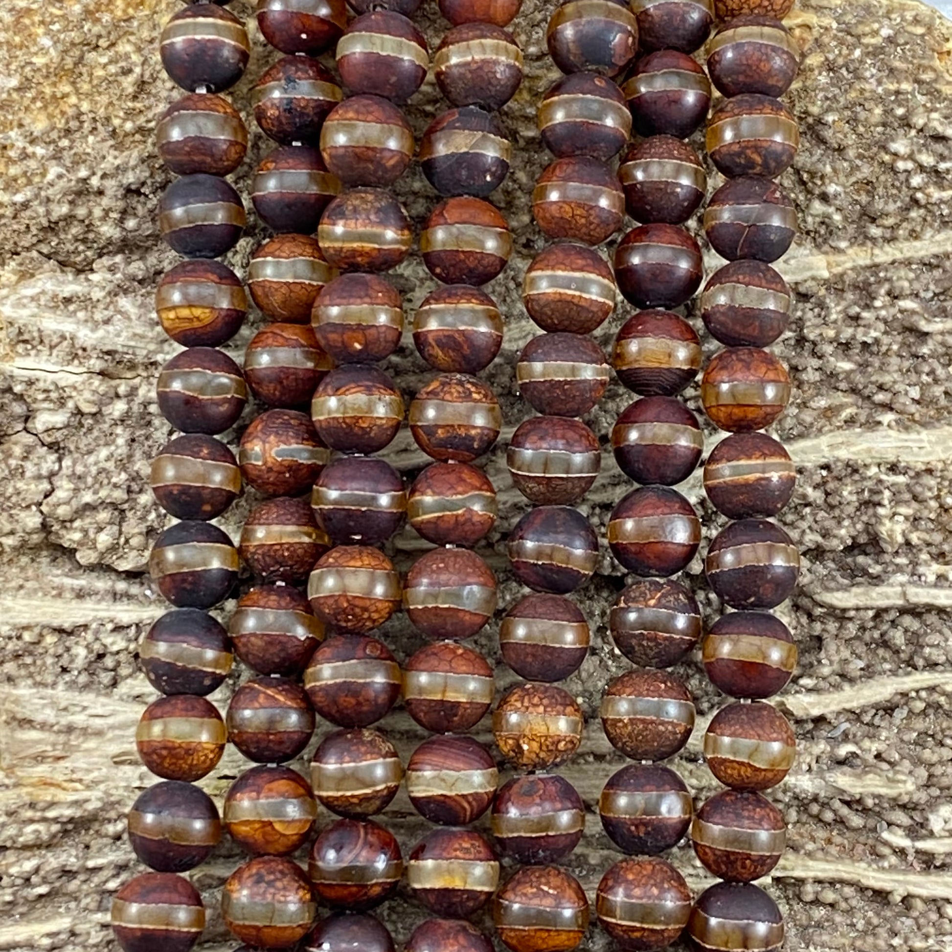 Dzi Agate, Tibetan Agate or Etched Agate Matte, Round 8mm, (Line Design)