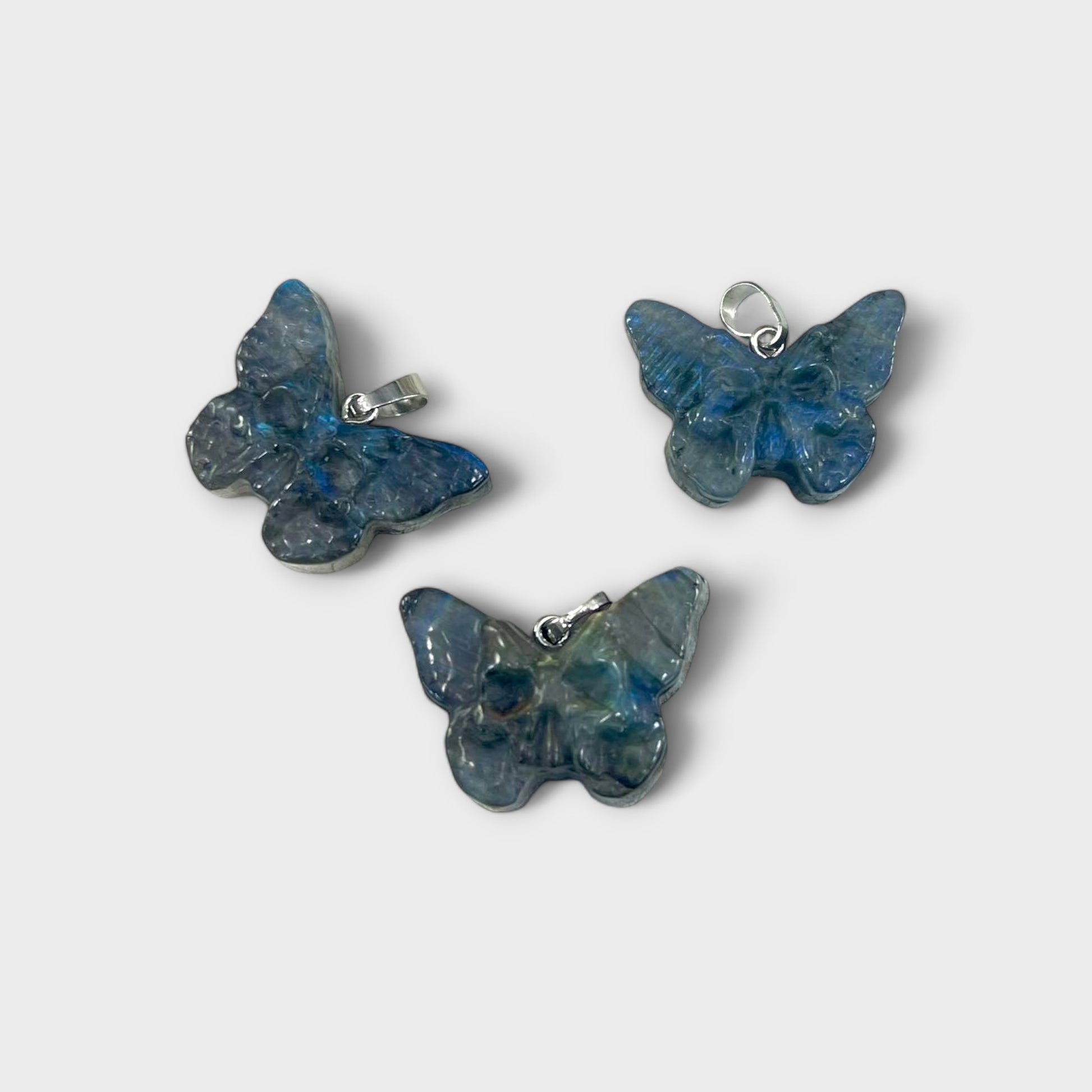 Labradorite, Butterfly w/ Skeleton Face Carved Pendant, 29x22mm (1pc)