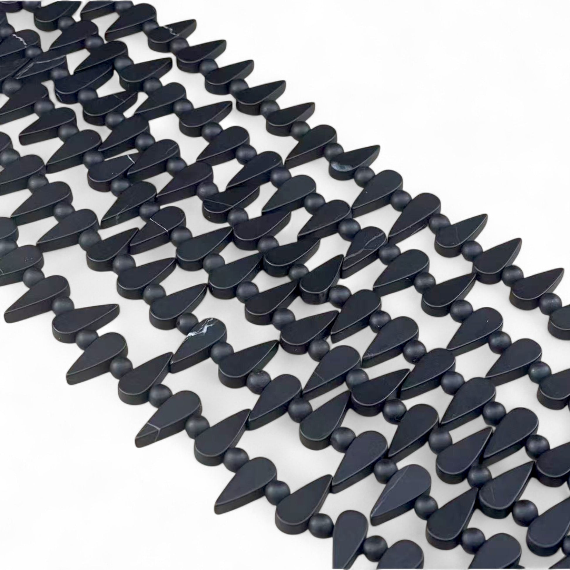 Matte Black Onyx, Teardrop Shape Top Drilled with Round 6mm