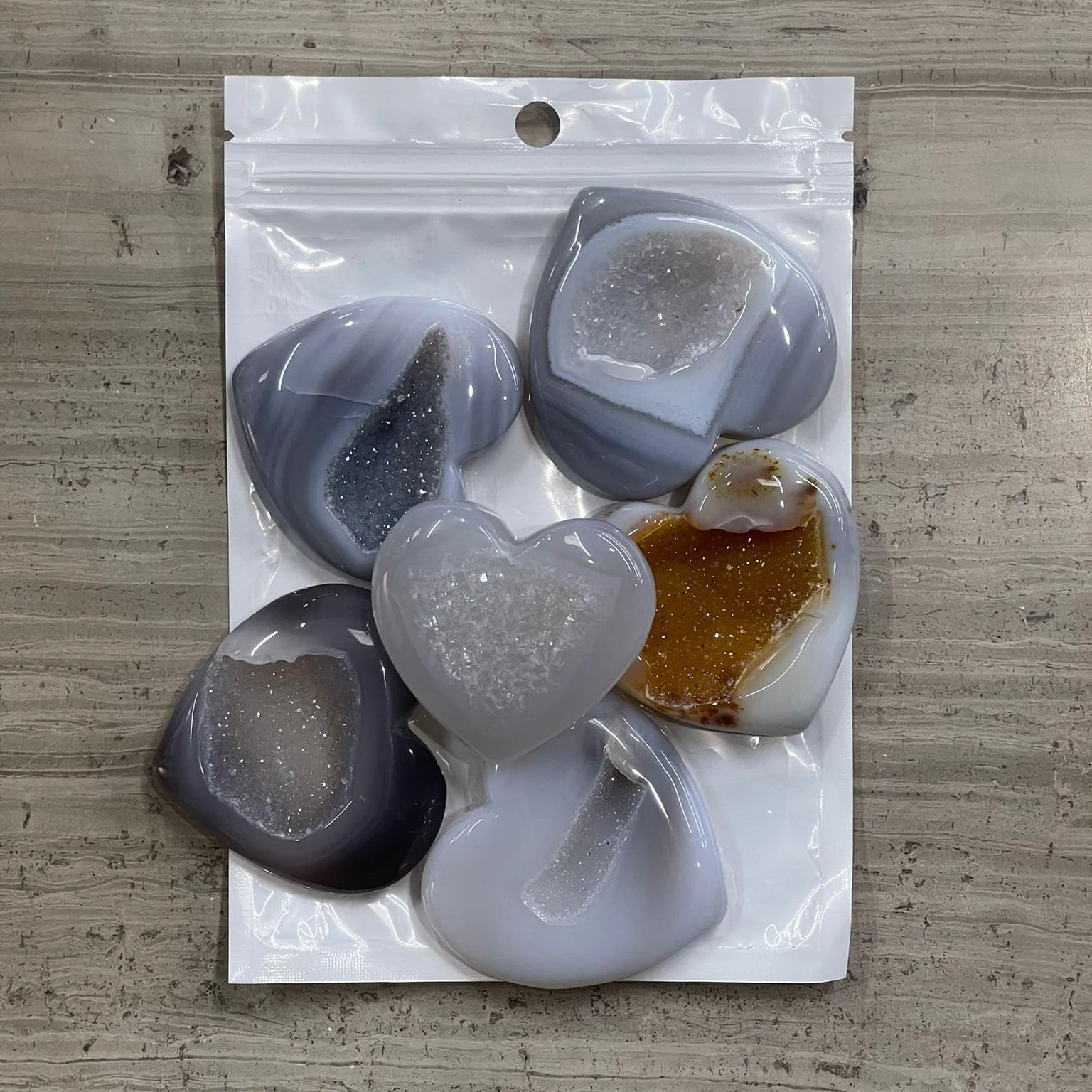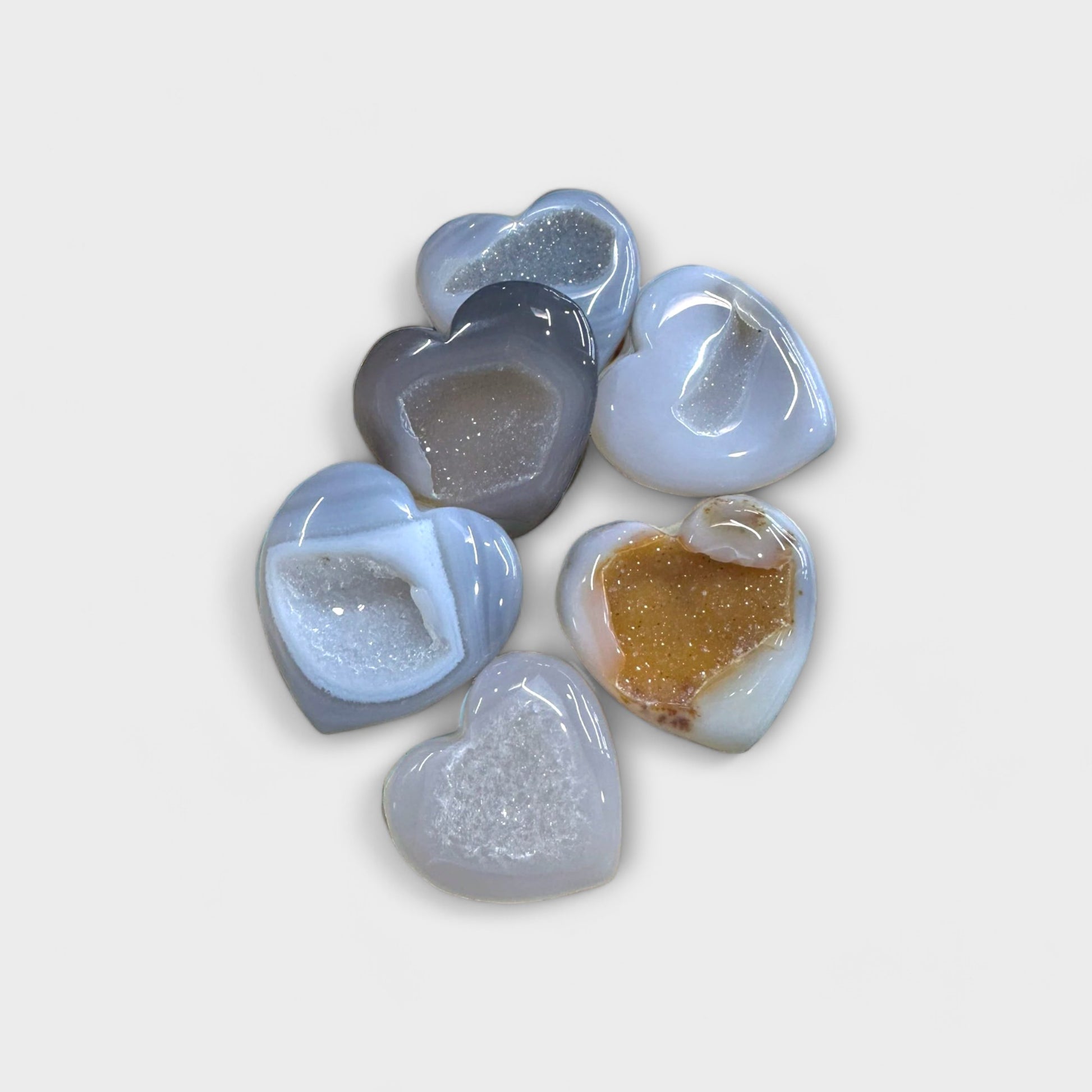 Natural Druzy Agate Heart Carvings