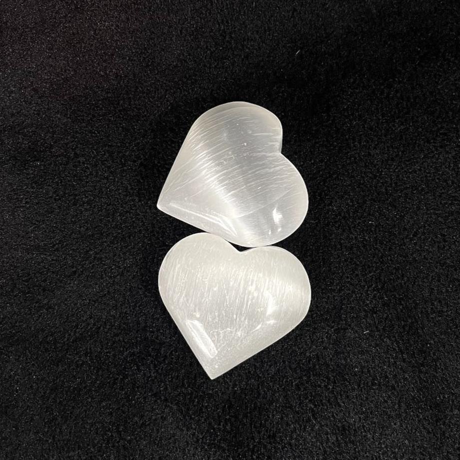 Selenite Heart 2.5in / 7cm Wide Palm Stone, Worry Stone, Polished (1 pc)