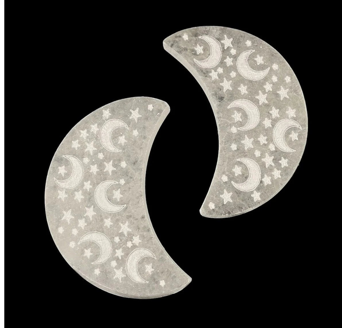 Selenite, Crescent Moon w/ Stars Engraved, Charging Plate, 3in/8cm (1pc)