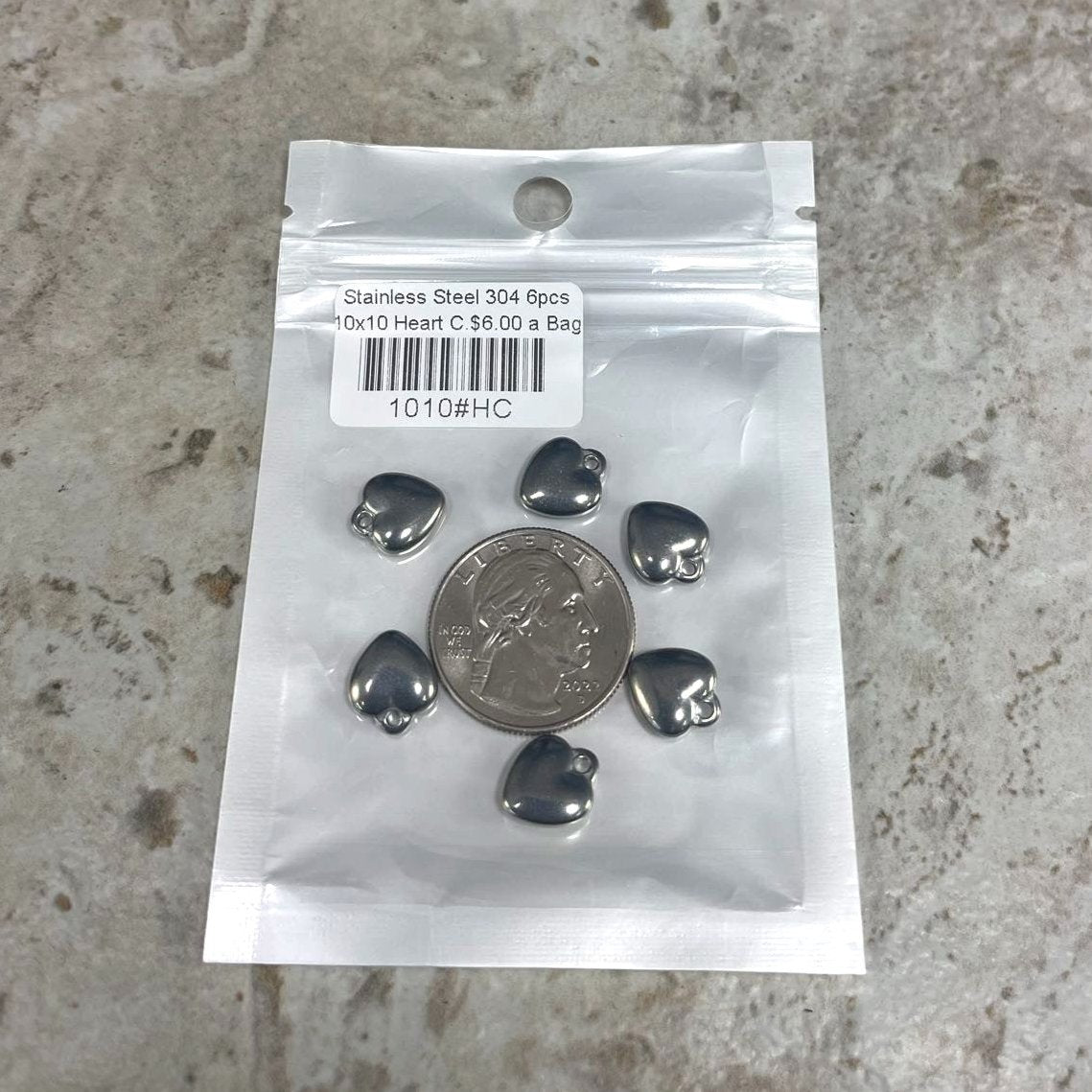Stainless Steel (304) Heart Shape Charms, 10x10mm